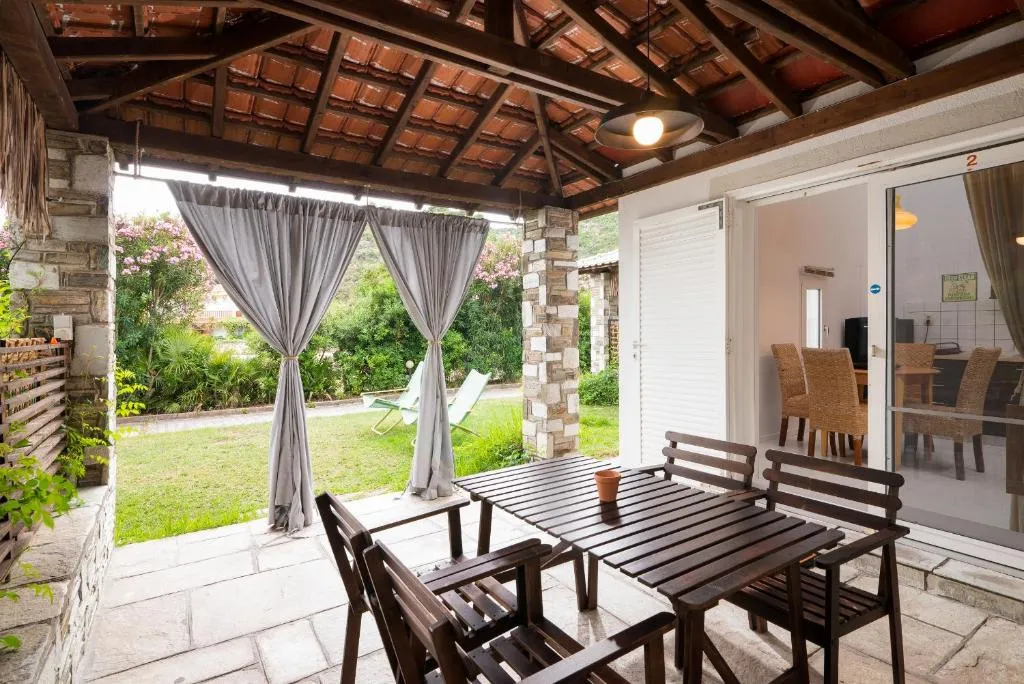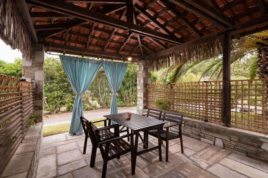 Direkt am Strand von Trani Amoudia, der mit der Blauen Flagge für sein sauberes Wasser und seine Organisation ausgezeichnet wurde, bieten die Pyrgos Bungalows authentische Entspannung mit Komfort und Sorgfalt. Die Gäste genießen private Sonnenliegen an unserer Strandbar, nur wenige Schritte von den Bungalows entfernt, für unbeschwerte Tage am Meer. Die Bungalows liegen in einem üppigen, gepflegten Garten und verfügen über eine Klimaanlage, einen Innenhof, kostenloses WLAN und eine Terrasse mit Meerblick. Jede Einheit verfügt über eine voll ausgestattete Küche mit Kühlschrank, Kochfeld, Kaffeemaschine, Toaster und Wasserkocher sowie ein eigenes Bad mit Dusche. Im Gemeinschaftsbereich gibt es auch einen Grill für gemütliche Abende mit der Familie unter freiem Himmel. Ein ideales Ziel für alle, die Ruhe, direkten Zugang zum Meer und authentische Gastfreundschaft auf der Chalkidiki suchen. Wir warten auf Sie, um gemeinsam die schönsten Sommererinnerungen zu schaffen!